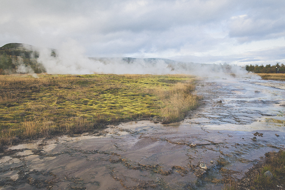 And we continue direction The Great Geysir (map) with a lunch break in a super picturesque place that had a hotel, campsite, lake, open pools and thermals: